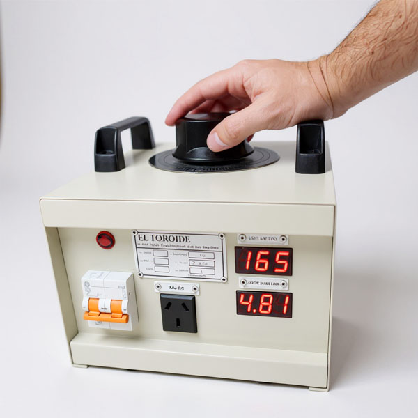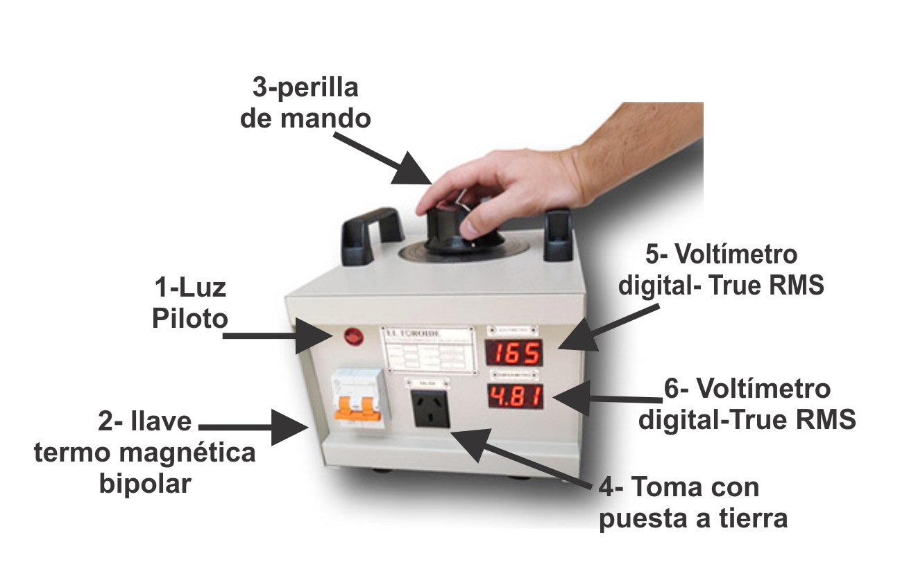 La perilla de mando es la que regula la tensión de salida del autotransformador.